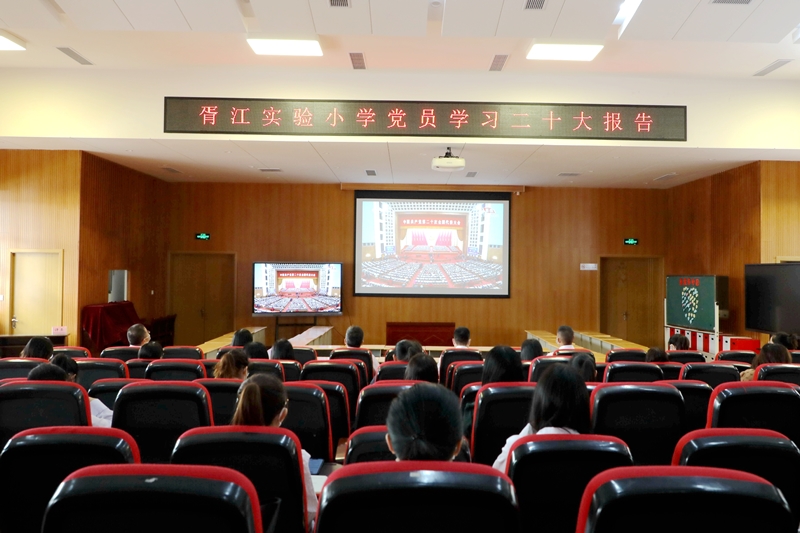 2022年10月16日,中共苏州市吴中区胥江实验小学党总支迅速行动,精心组织,集中党员教师观看党的二十大开幕会,认真学习习近平总书记代表十九届中央委员会向大会作的报告。全体党员身着正装,佩戴党徽,严格遵守防疫规定,佩戴口罩,一隔一就坐,认真学习、专心聆听习近平总书记的讲话。通过此次集中学习,全体党员教师的党性修养得到提升、责任意识得到增强。在接下来的工作中,党员教师将深入贯彻大会精神,立足教育教学工作,不忘入党初心,牢记立德树人使命,在工作中发挥模范带头作用,为党的教育事业发展贡献自己的力量!