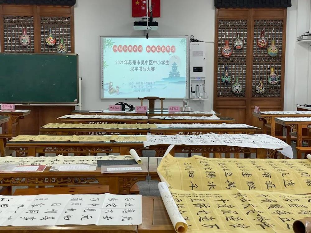 金秋十月,丹桂飘香。为庆祝中国共产党成立100周年,在广大青少年学生中深入推进党史教育,激发广大青少年“请党放心 强国有我”的强音,10月18日下午,东山实验小学教育集团“书写经典诗词 传承红色基因”2021年苏州市吴中区中小学生汉字书写大赛在胥口中心小学举行。